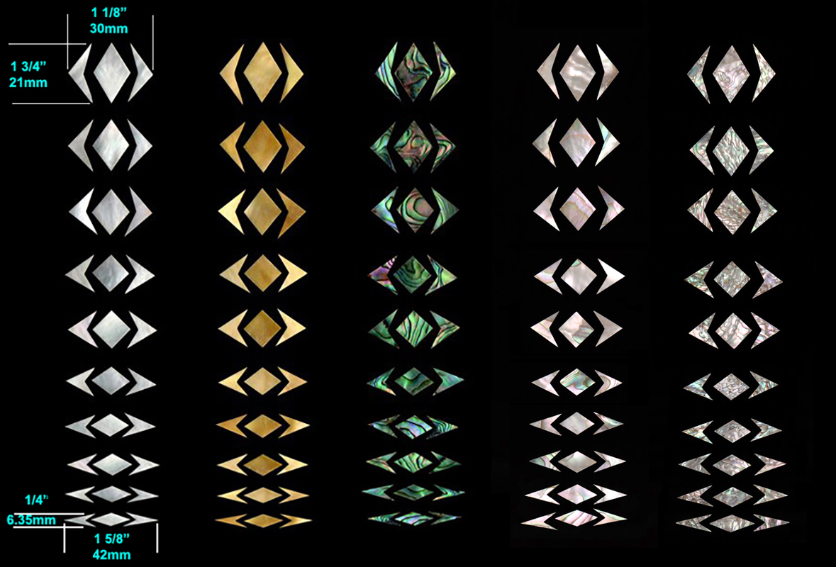 Traditional Guitar Inlay set that can also be used for other Fretted Stringed Instrument with a similar sized fret board.