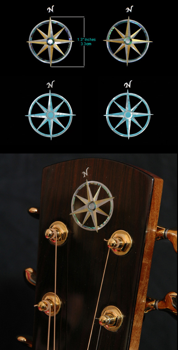 The photo shows a guitar built by Mike Preyer using one of our Compass Rose inlays we made as a special order for him some time ago.