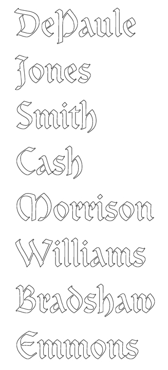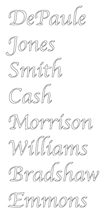 For two Names such as “The Gleason” or names with fancy tails or other fancy frills the price is 50% extra.